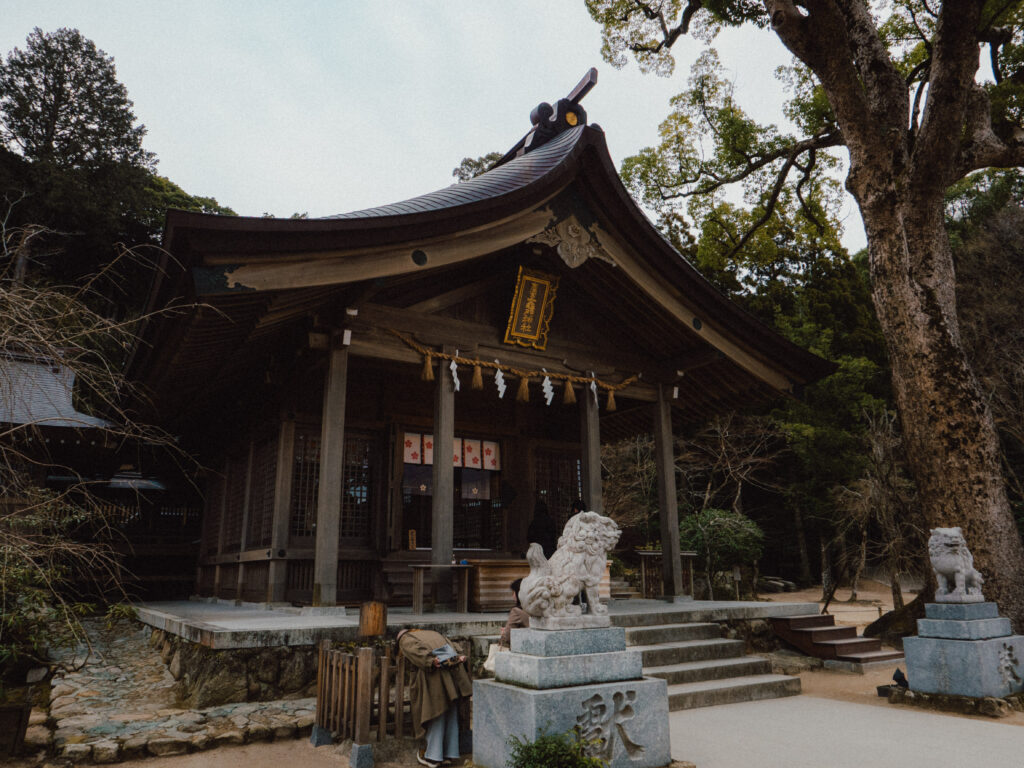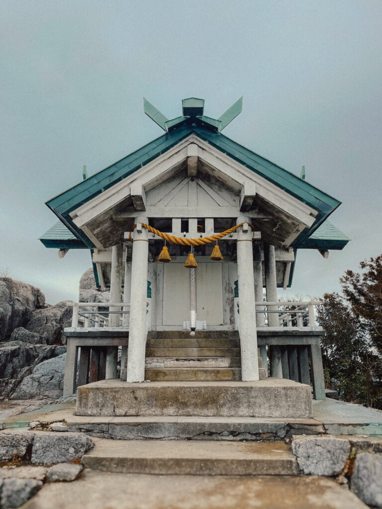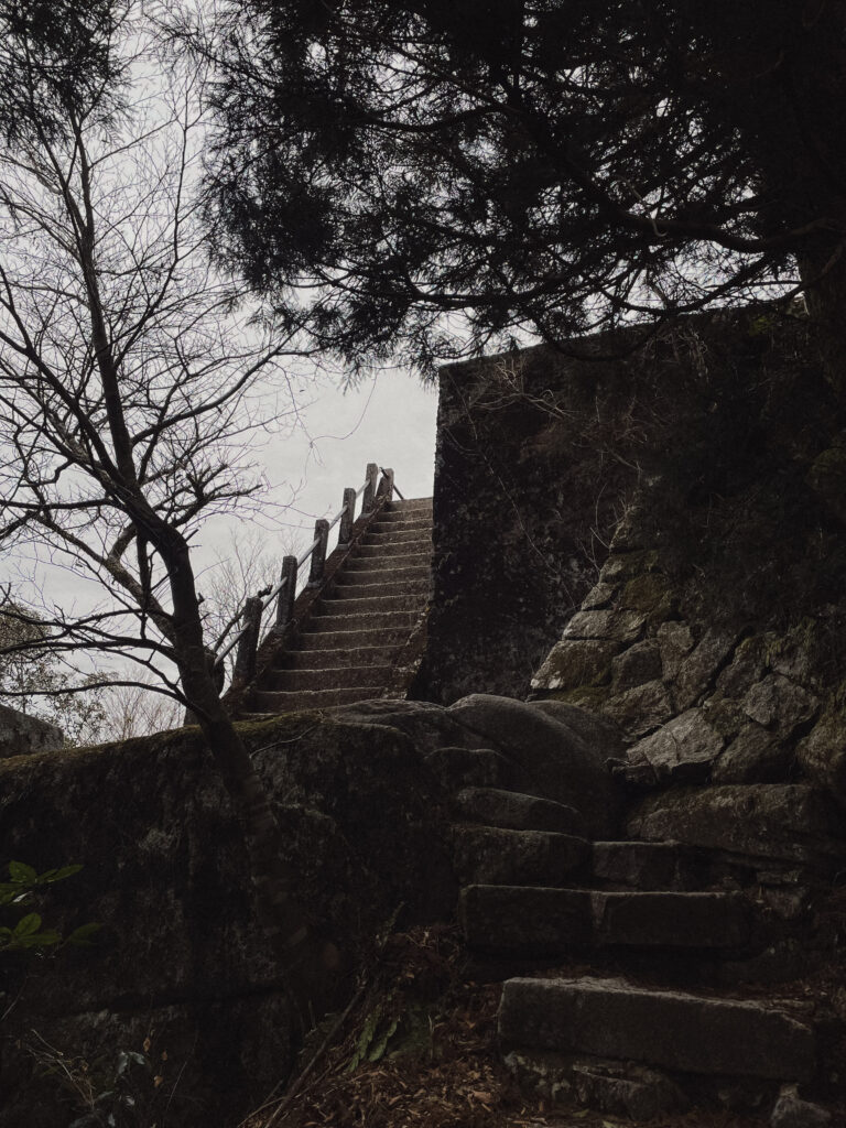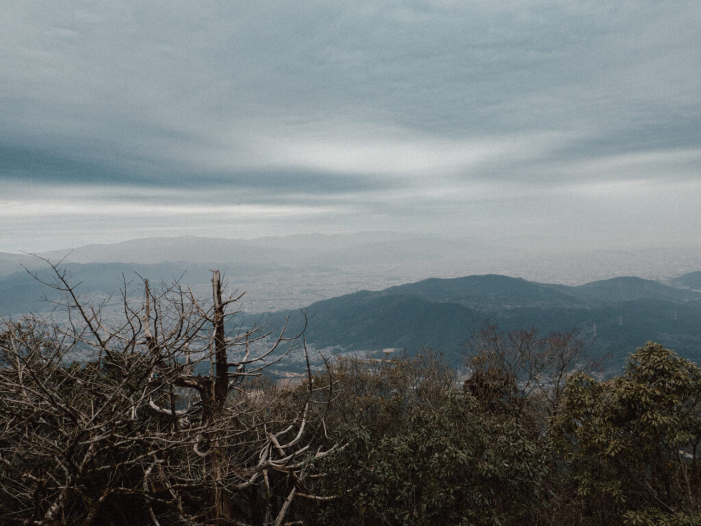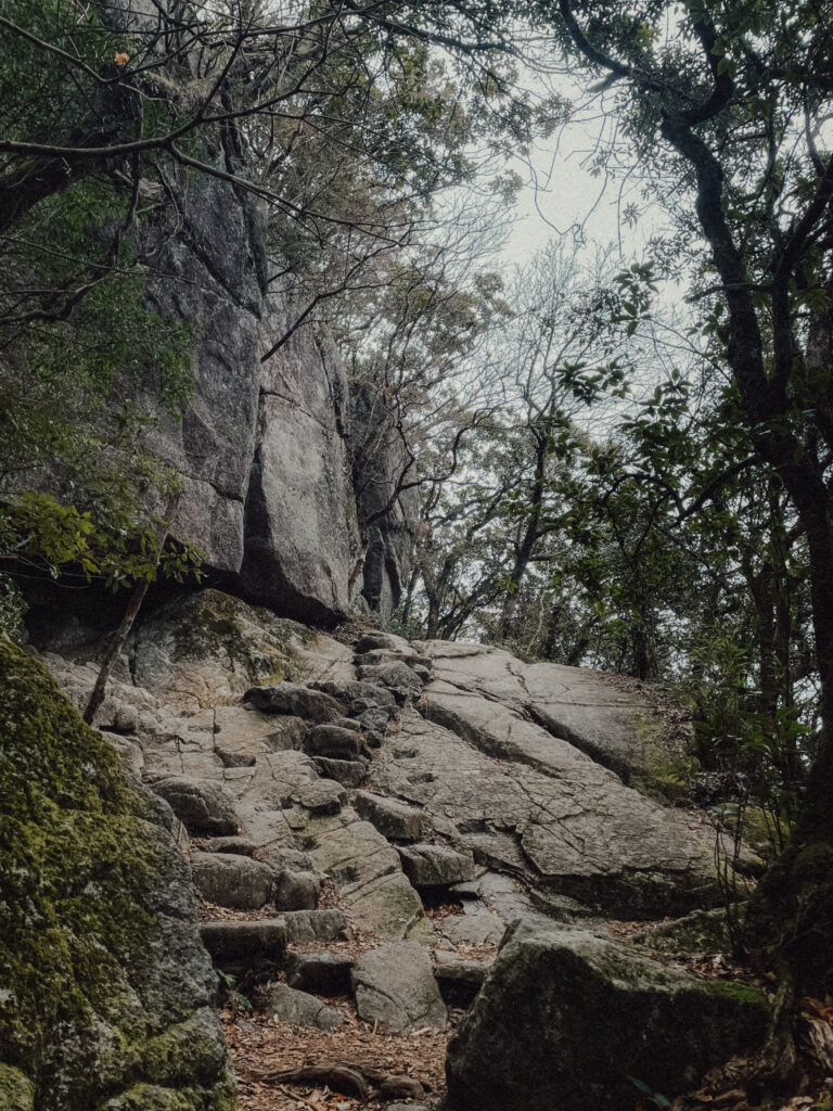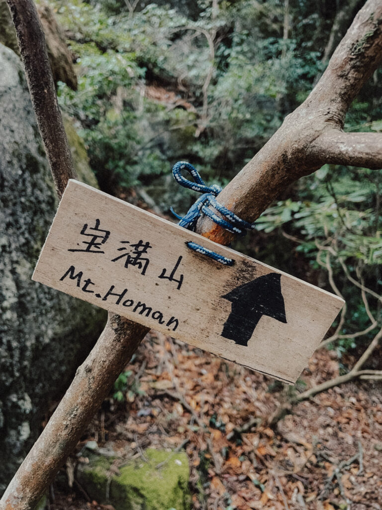 Vom Kamado-Schrein aus startet dann auch der Kyūshū Naturwanderweg auf dessen Route mehrere Berggipfel liegen. Der erste Berggipfel ist mit 829 Höhenmeter der Berg Hōman. Der Wanderweg ist ziemlich steil und rutschig, insgesamt hat mich der Aufstieg knapp 2 Stunden beschäftigt. Insgesamt traf ich viele ältere Japaner auf dem Weg…die Leute hier sind bis ins hohe Alter ziemlich fit hier. Ich kenne Leute in meinem Alter, die diese Route nicht leicht weggesteckt hätten, umso surrealer die zahlreichen Situationen wo mir von geschätzt Mitte 60-Jährigen in Wandermontur freudig ein „konnichi waaaaa“ entgegengerufen wird. Leider zog sich mehr und mehr eine Wolkendecke auf, sodass ich leider auch keine Weitsicht hatte. Normalerweise kann man bei gutem Wetter ohne Probleme vom Hōman-zan aus das Meer sehen.